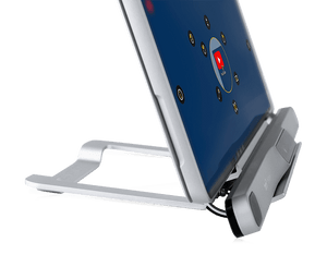 只需利用内置的磁力安装板将 PCEye眼控仪轻轻一扣即可固定,并将您的平板电脑滑入支架中,即刻实现稳固连接。PCEye眼控仪能通过 USB 线连接至平板,您也可以使用支架自带的底座将其放置在台面上。 (PCEye眼控仪单独出售眼控仪需另外购买)